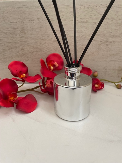 Comes in a 4 oz silver bottle with 10 black or natural reeds. Our reed diffuser base is non-toxic, and VOC compliant. The fragrance last over 90 days. Flip reeds once a week or when scent weakens.